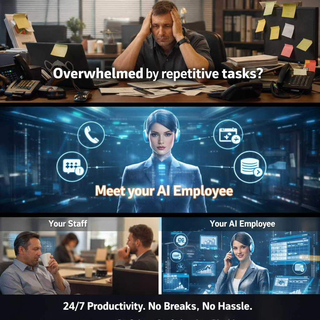 Today’s leading organizations run on artificial employees — AI‑powered voice, text, and process agents that handle repetitive, routine, or time‑sensitive tasks so your real team can focus on what humans do best: create, connect, and think.